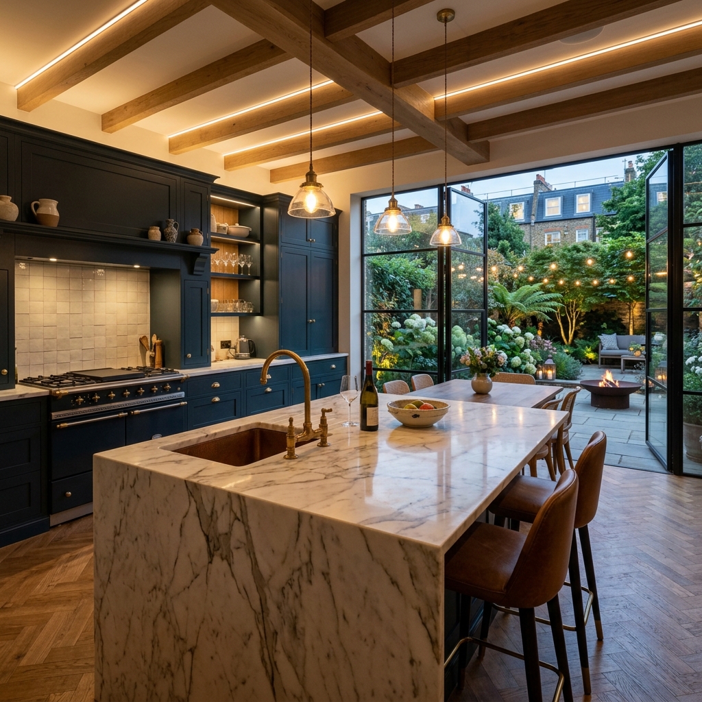 Complete kitchen transformation from design to installation. Budget realistically with a published range from £15,000 to £85,000, backed by clearer scope notes, delivery context, and direct office guidance before you commit.